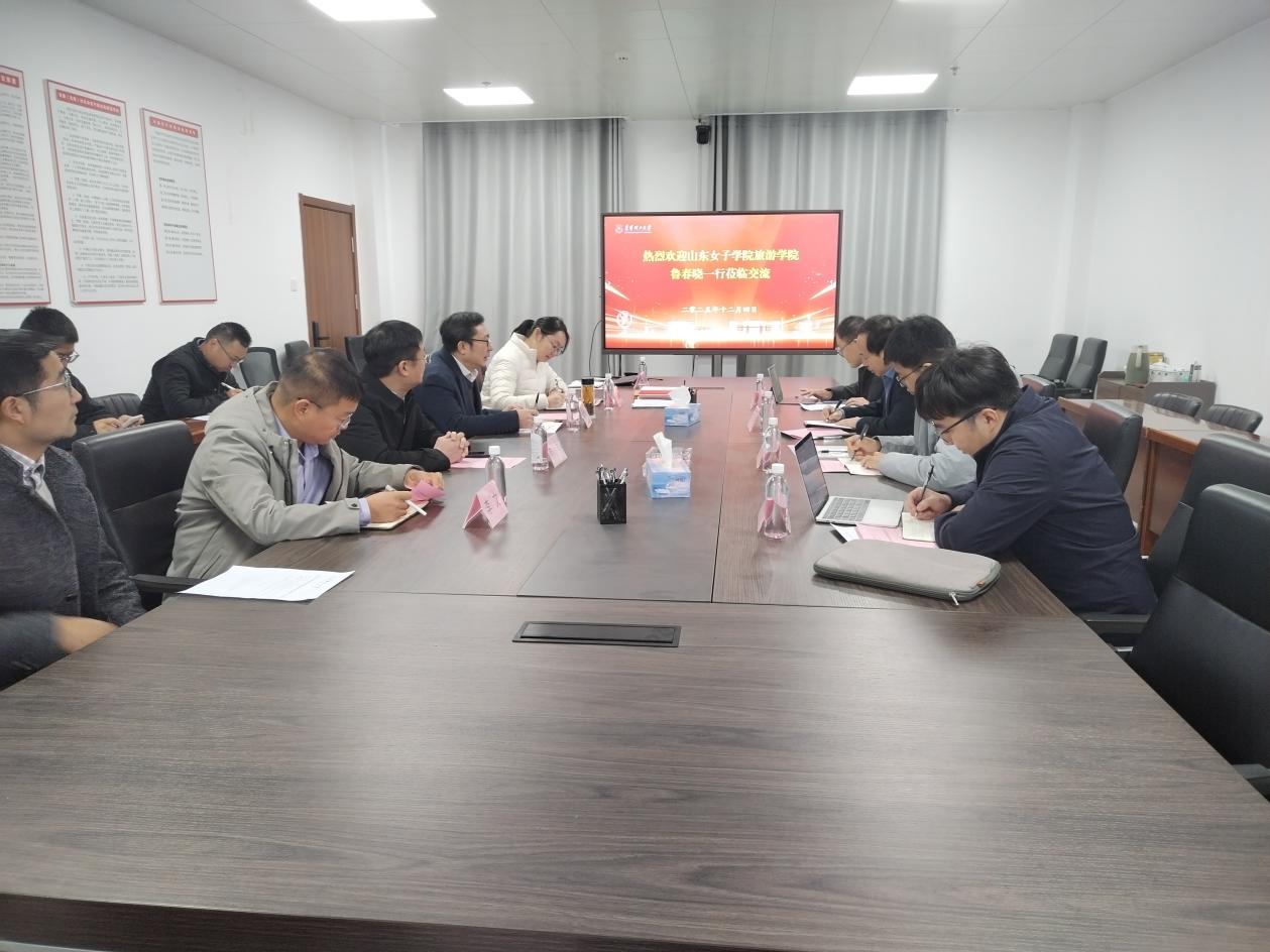 座谈会上,刘金花对鲁春晓一行的到来表示热烈欢迎。于涛介绍了学校及学院的历史发展脉络、办学特色、人才培养和专业建设成果。鲁春晓介绍了山东女子学院旅游学院的基本情况,并表示希望通过此次调研能够学习借鉴我院在旅游地学与规划工程专业建设方面的经验。刘金花从招生及就业情况、师资情况、人才培养方案、实践教学及毕业设计等方面详细介绍了旅游地学与规划工程专业的建设情况。