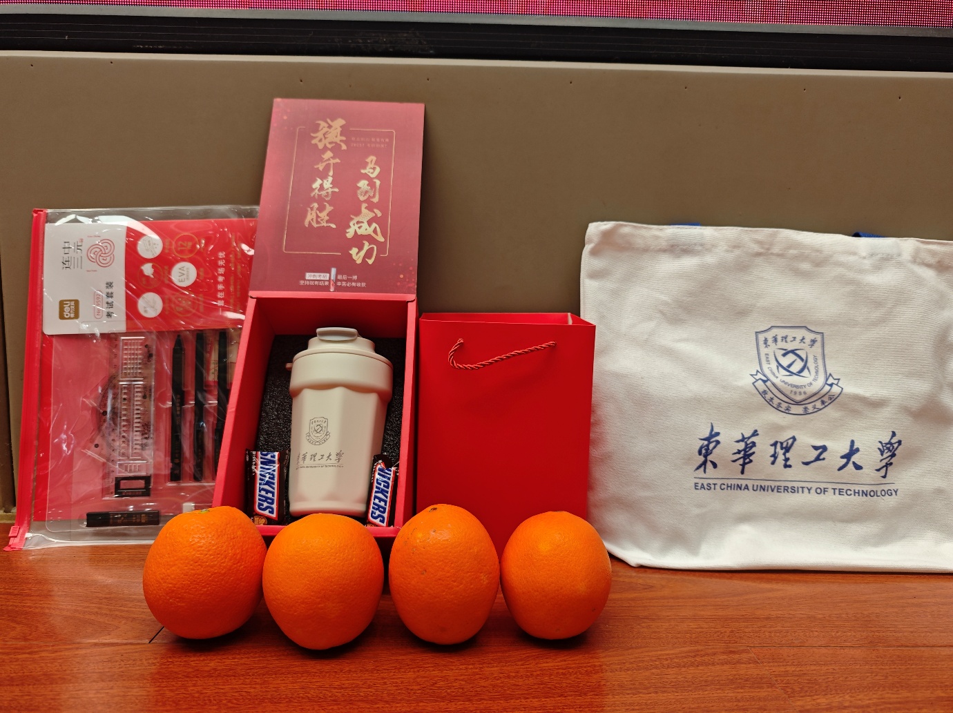 学院给每一位考研学子精心准备了专属“研途加油大礼包”,每份礼包都经过细致搭配,有“保温”初心,温暖相伴的多彩保温杯,考研必备的定制签字笔、涂卡笔、文件袋等实用文具,也有寓意“心想事橙”的橙子、补充能量的士力架,更附有专属考研祝福卡片,表达了学院的殷切期盼与真挚关怀。学子们依次接过沉甸甸的礼包,脸上洋溢着感动的笑容,纷纷表示这份礼物不仅解决了备考中的实际需求,更让大家感受到了“家一般的温暖”。