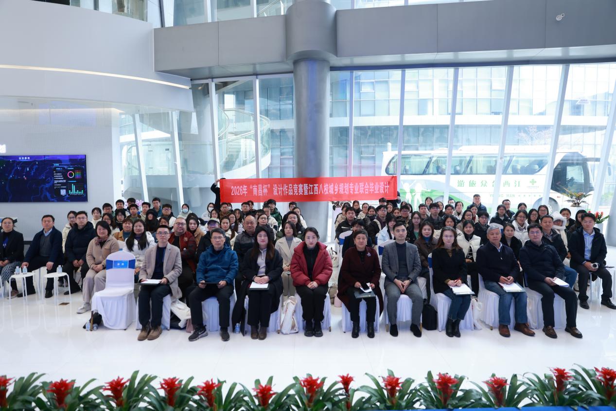 2025年12月23日,2026年“南昌杯”设计作品竞赛暨江西八校城乡规划专业联合毕业设计启动会在南昌市规划展示中心隆重举行。本次活动由江西省自然资源厅指导,江西师范大学、南昌市自然资源和规划局等单位联合主办,江西师范大学城市建设学院、南昌市规划展示中心联合承办,东华理工大学与南昌大学、江西理工大学等 8所高校共同参与。我校城乡规划专业师生代表受邀出席,与来自全省相关部门、兄弟院校的百余名嘉宾齐聚一堂,共同见证这场聚焦城市更新与城乡高质量发展的学术盛会启幕。
