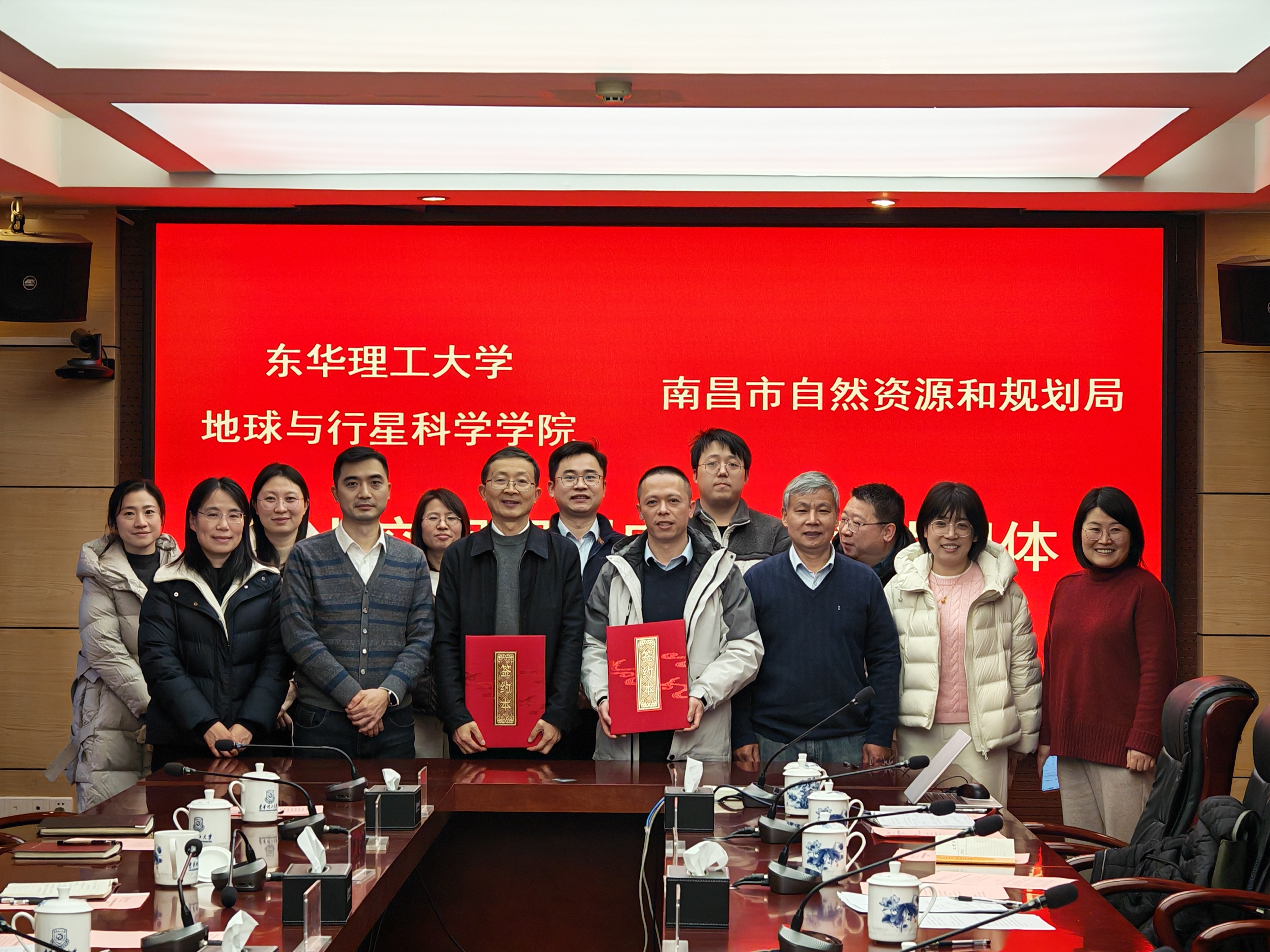 1月21日,东华理工大学地球与行星科学学院与南昌市自然资源和规划局共建“国土空间规划实践教学共同体”签约仪式,在东华理工大学广兰校区行政楼301会议室顺利举行。南昌市自然资源和规划局党组成员、市规划国土发展研究中心主任陈长春率相关科室负责人出席;我校教务处副处长马文洁、研究生院副院长颜照坤、地球与行星科学学院党委书记何海清及相关人员共同参加。